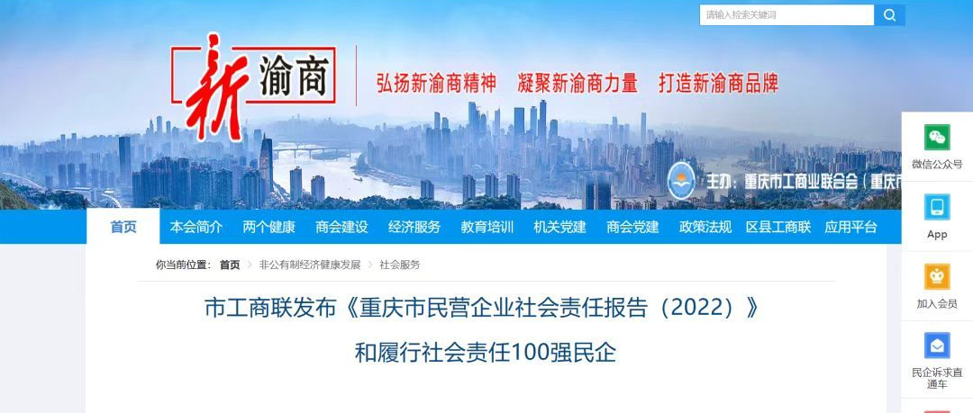 喜訊!熱烈祝賀新西亞鋁業集團入選“2022重慶市民營企業社會責任百強榜”