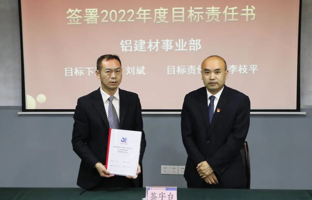 集團公司董事長、總經(jīng)理劉斌代表集團公司分別與各事業(yè)部主要負責人簽訂了《2022年經(jīng)營目標責任書》。目標責任書將各事業(yè)部工作的責任目標、責任內容、考核獎勵等類目進行了具體規(guī)定,充分壓實各級責任,使得各事業(yè)部工作更加具體化、細致化、責任化,為各級管理者能更好地完成公司規(guī)定的各項經(jīng)濟指標起到了積極的促進作用。