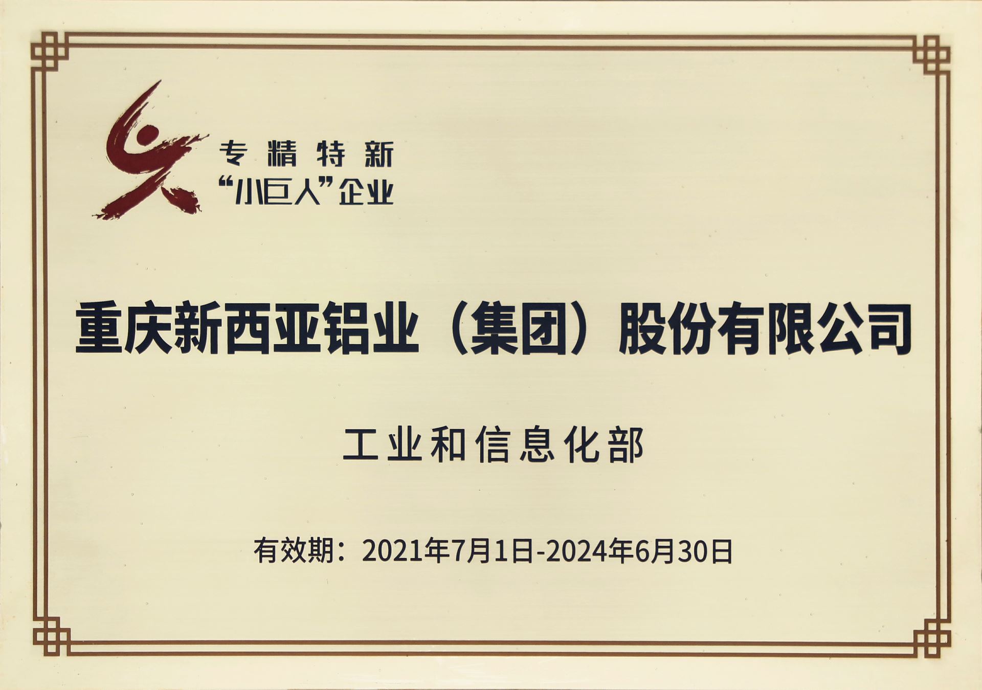 近日,新西亞鋁業(yè)獲工業(yè)和信息化部專精特新“小巨人”企業(yè)授牌(全國第三批)。