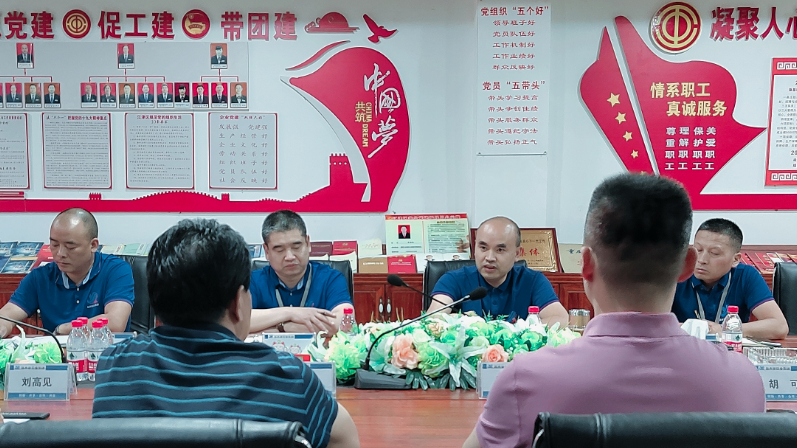隨后,雙方在公司黨群會議室開展了座談與交流。鋁家居事業(yè)部總經(jīng)理王凱以PPT的形式,從集團公司“歷史沿革、發(fā)展戰(zhàn)略、品牌宣傳、文化建設(shè)、團隊建設(shè)、市場開發(fā)、工程案例”七個維度向梁總、王秘書長進行了詳細講解。