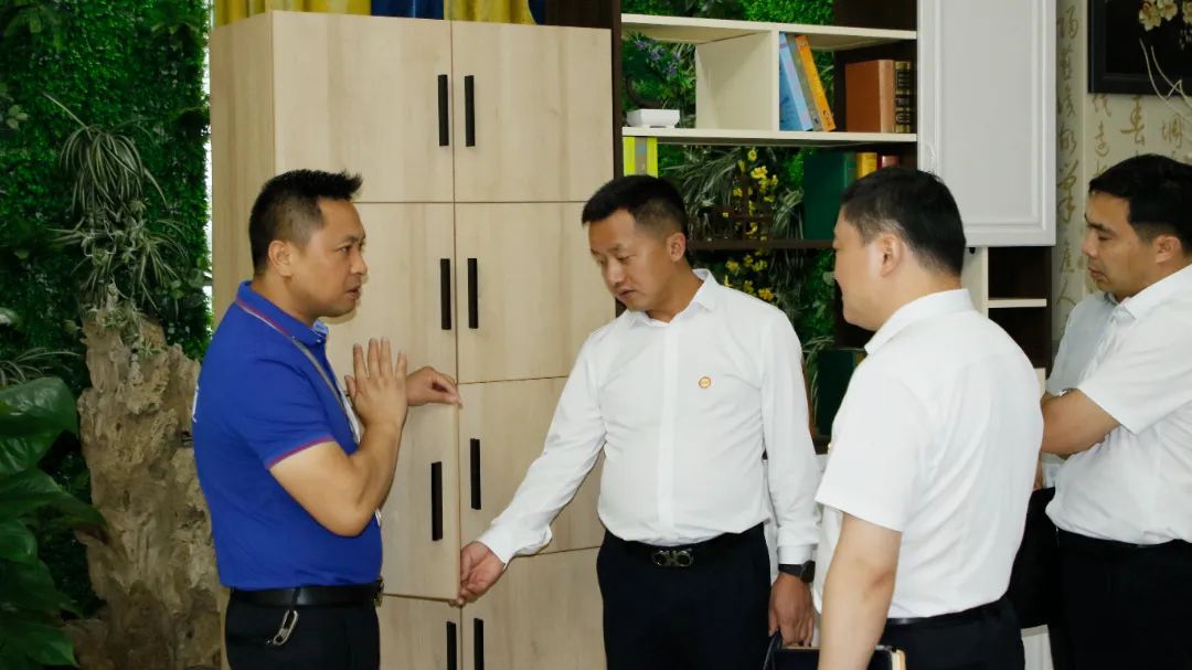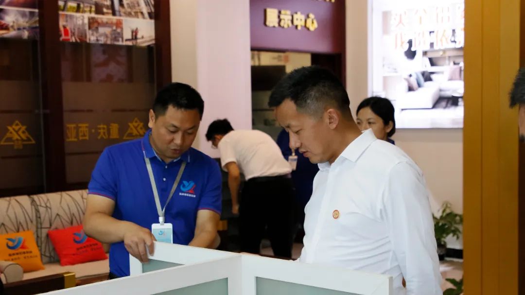 在集團公司黨支部書記、董事長、總經理劉斌的陪同下,沈總一行先后參觀了集團公司鋁裝飾展廳、鋁家居展廳、黨群活動室、文化長廊等區域。