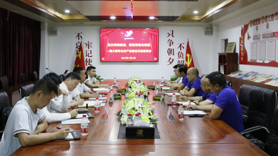 7月4日下午,重慶輝騰能源股份有限公司董事長沈正華攜公司總工程師孫小波、公司企管部部長兼黨支部書記(原火箭軍某團政委)孟寶平等一行5人蒞臨新西亞鋁業集團參觀考察,開展重大領軍企業產業融合交流座談會和黨建交互學習活動。