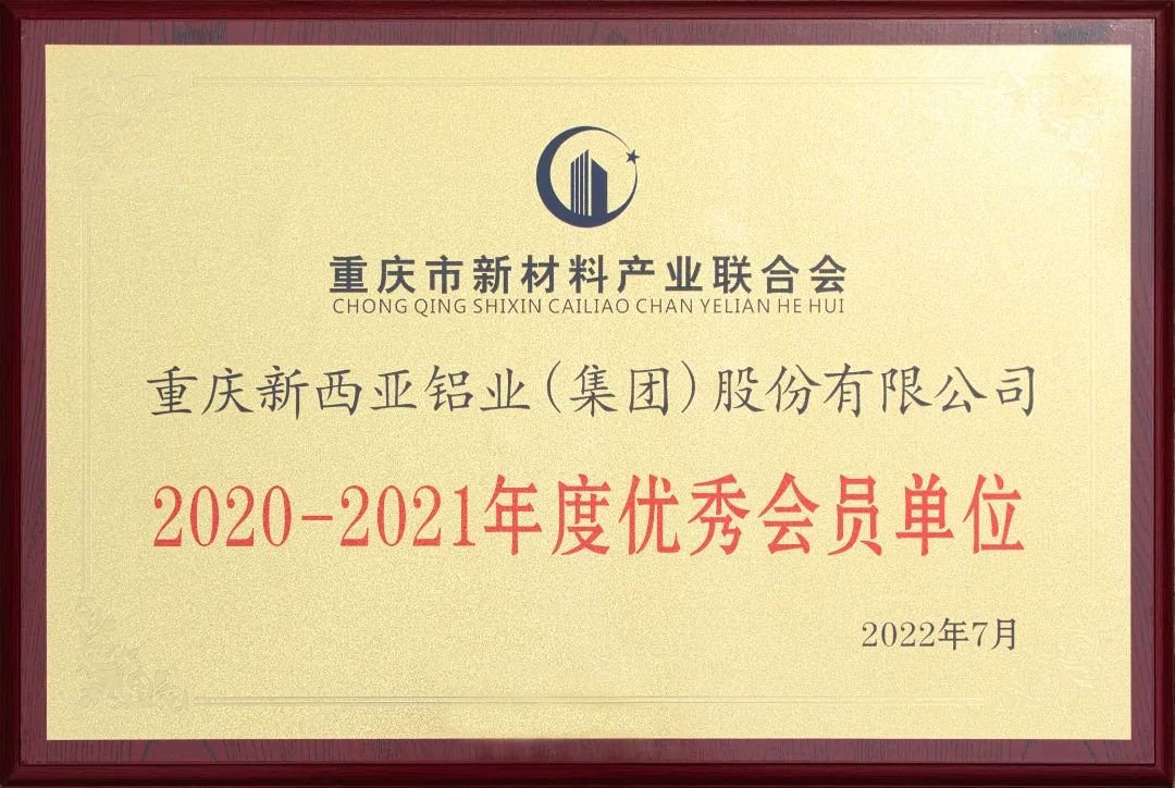 【新西亞鋁業(yè)集團(tuán)】喜報(bào):新西亞鋁業(yè)集團(tuán)榮獲重慶市新材料產(chǎn)業(yè)聯(lián)合會(huì)2020-2021年度優(yōu)秀會(huì)員單位