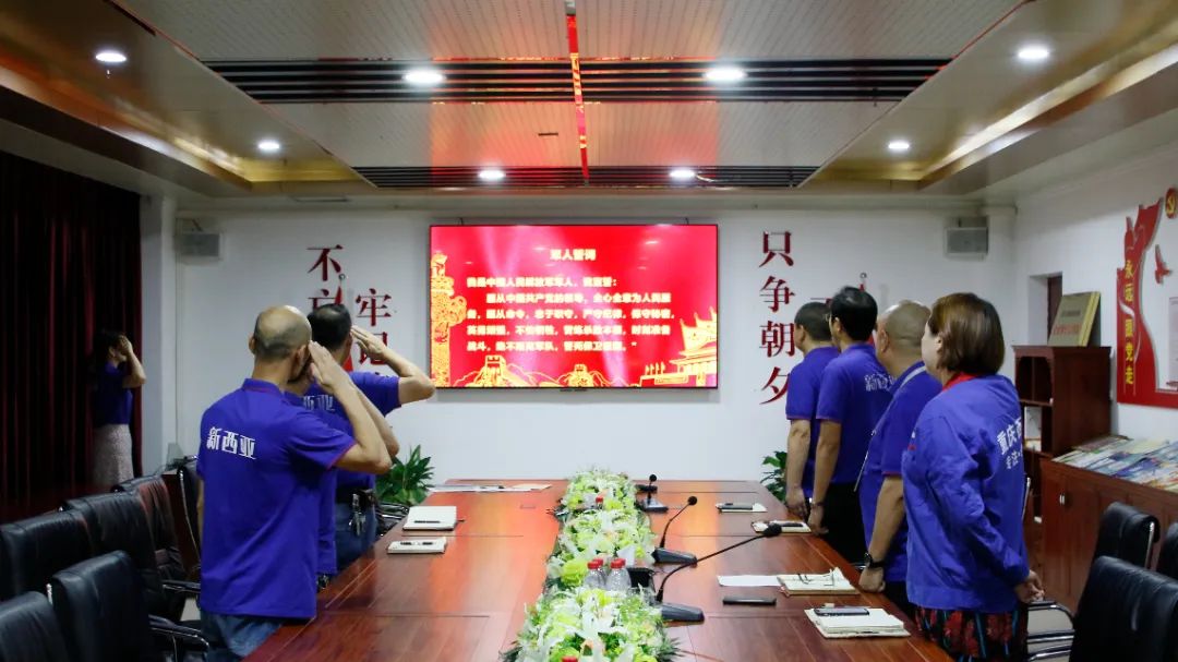 會議在雄壯軍歌中拉開帷幕,公司經(jīng)營班子成員與退役軍人員工一起,以標(biāo)準(zhǔn)的站姿與軍禮齊唱《中國人民解放軍軍歌》,重溫了中國人民解放軍軍人誓詞。雄壯的歌聲,唱出了當(dāng)代軍人保家衛(wèi)國的時代主旋律;錚錚誓言,銘記著新西亞退役軍人員工對國家、對人民、對企業(yè)的無限忠誠。