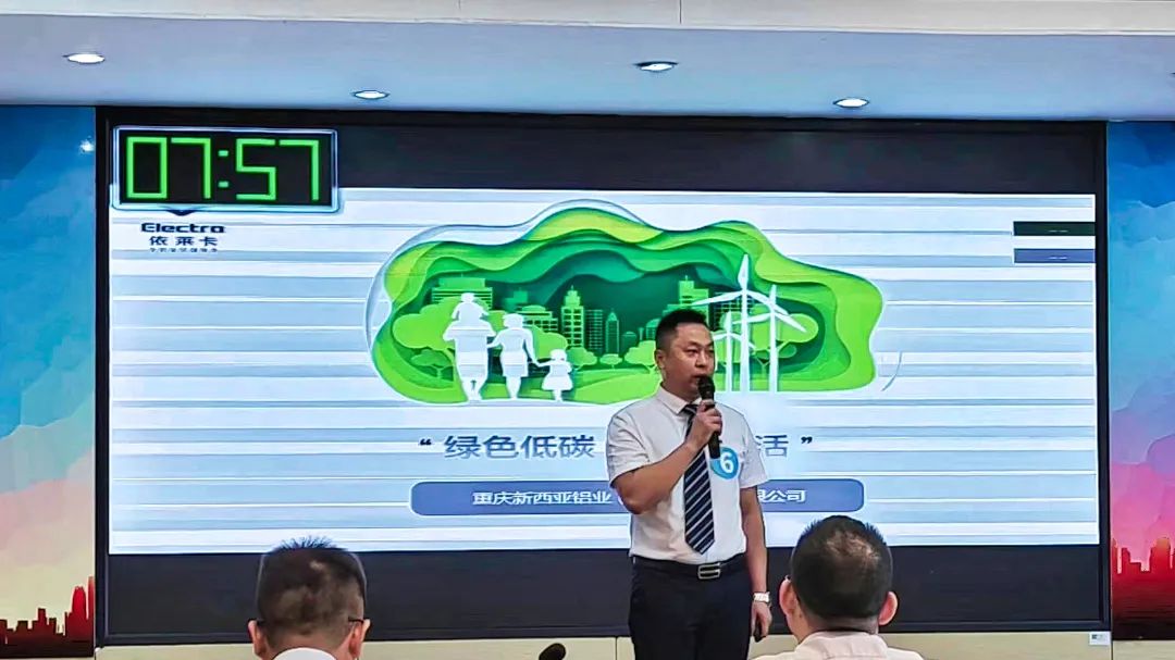 由新西亞鋁業集團選送的《綠色低碳、智享生活》作為路演第六名登臺亮相,項目路演人——新西亞鋁業集團融合營銷(重慶)運營中心經理唐春以高亢的聲音、專業的臺風及表達能力,以“雙碳經濟”為切入點,將依萊卡全鋁家居健康零甲醛、耐用五十年、高保值可回收的循環利用特性及依萊卡人誓做實現雙碳經濟目標的踐行者的使命講述得淋漓盡致,完美彰顯了全鋁家居的廣泛應用場景和強大的市場價值、經濟價值、社會價值,得到了參會領導和與會嘉賓的高度贊譽。