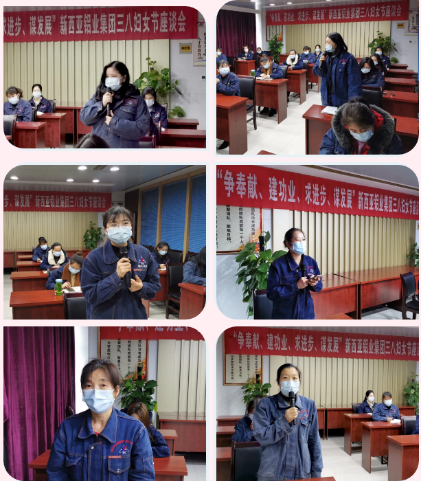 在和諧、融洽、喜慶的氣氛中,與會女職工代表們暢所欲言。她們結合本職工作談體會,聯系個人生活聊感悟,圍繞公司經營發展提建議,謀對策。她們紛紛表示在今后的工作中,會不斷用新知識、新方法充實自己、提高自己,充分發揮女員工耐心細致、提能力、創佳績,為新西亞鋁業集團各項工作再上新臺階作出貢獻。