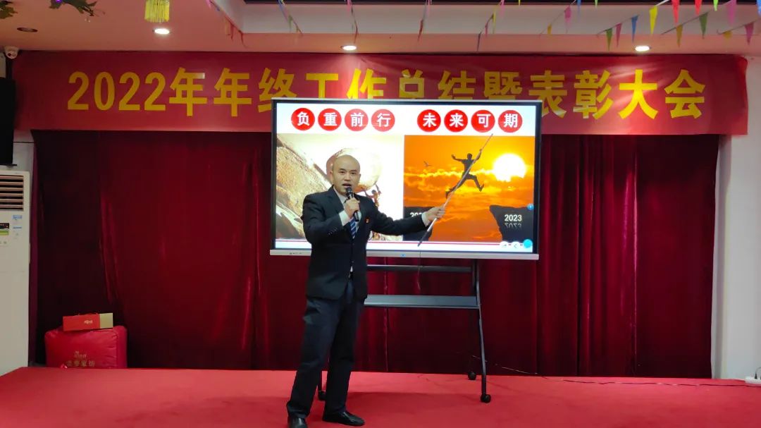 針對集團2022年年終工作報告,結合2023年發展綱要,總經理劉斌以《負重前行、未來可期》為主題,對2023年工作進行了規劃解析。