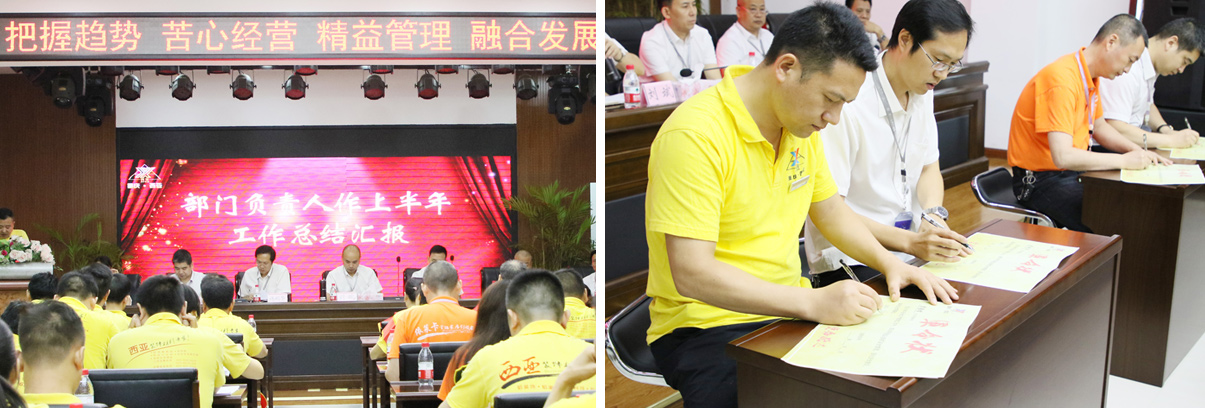 會議的主要議程:一是部分部門負責人對本部門上半年工作進行了總結,提出了下半年的工作思路。二是公司董事長、總經理劉斌在會上作了《把握趨勢、苦心經營、精細管理、融合發展》的2018年上半年工作報告。三是對2018年上半年涌現出來的各類先進集體和先進個人進行了表彰,四是優秀員工代表進行了發言;五是宣布了2018年下半年公司部分機構調整及相關人事任免;六是相關領導與部門負責人簽定了《安全軍令狀》,七是通過了“關于在集團公司員工中開展“大融合”的倡議書”;八是劉董事長分享了參加清華大學中青年企業家學習班學習感想;最后,全體參會人員進行了集體宣誓。