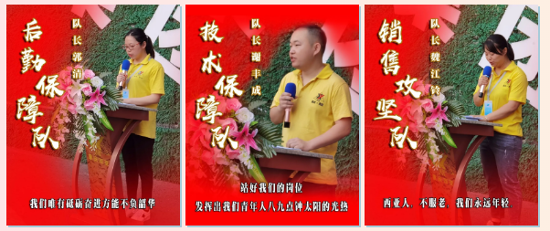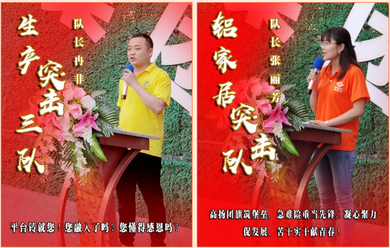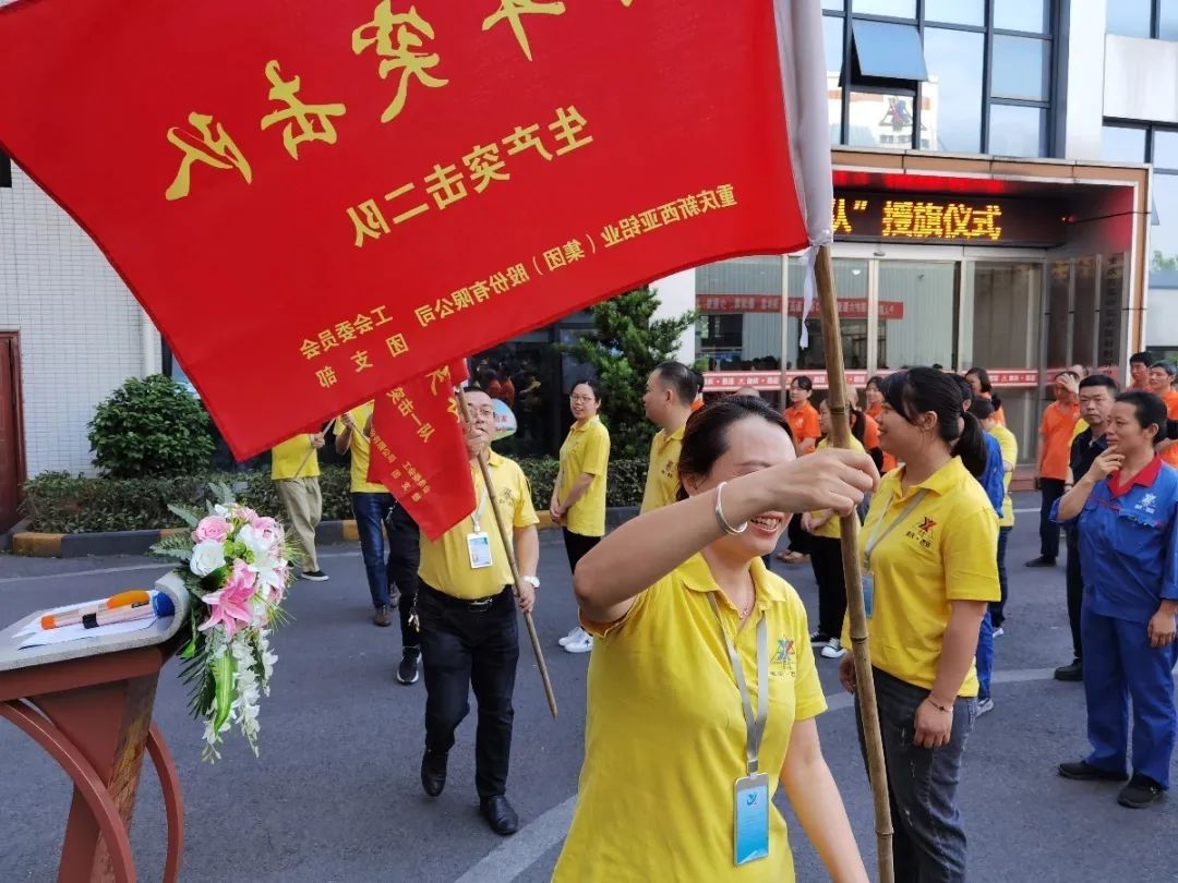 隨后,公司經營班子成員分別向“后勤保障隊”、“技術保障隊”“銷售攻堅隊”、“生產突擊一隊”、“生產突擊二隊”、“生產突擊三隊”、“鋁家居突擊隊”七支青年突擊隊隊伍授旗。