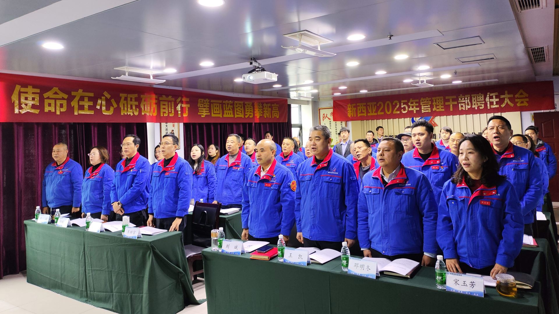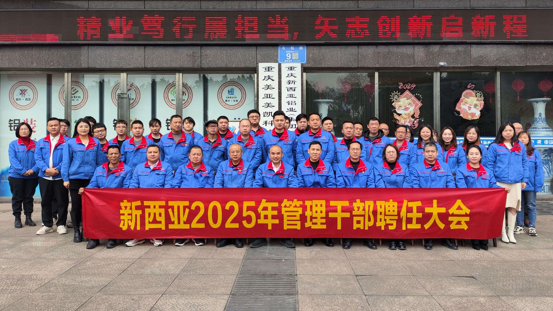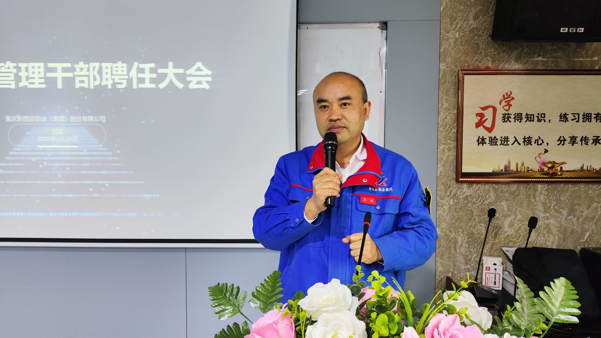 2月28日,重慶新西亞鋁業集團2025年管理干部聘任大會在三樓商學院隆重舉行。大會由總經理助理周雄主持,集團公司董事會成員、擬聘任管理干部負責人、儲備(后備)人才以及員工代表等48人參加會議。