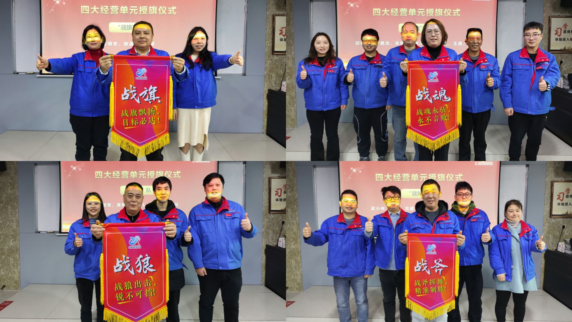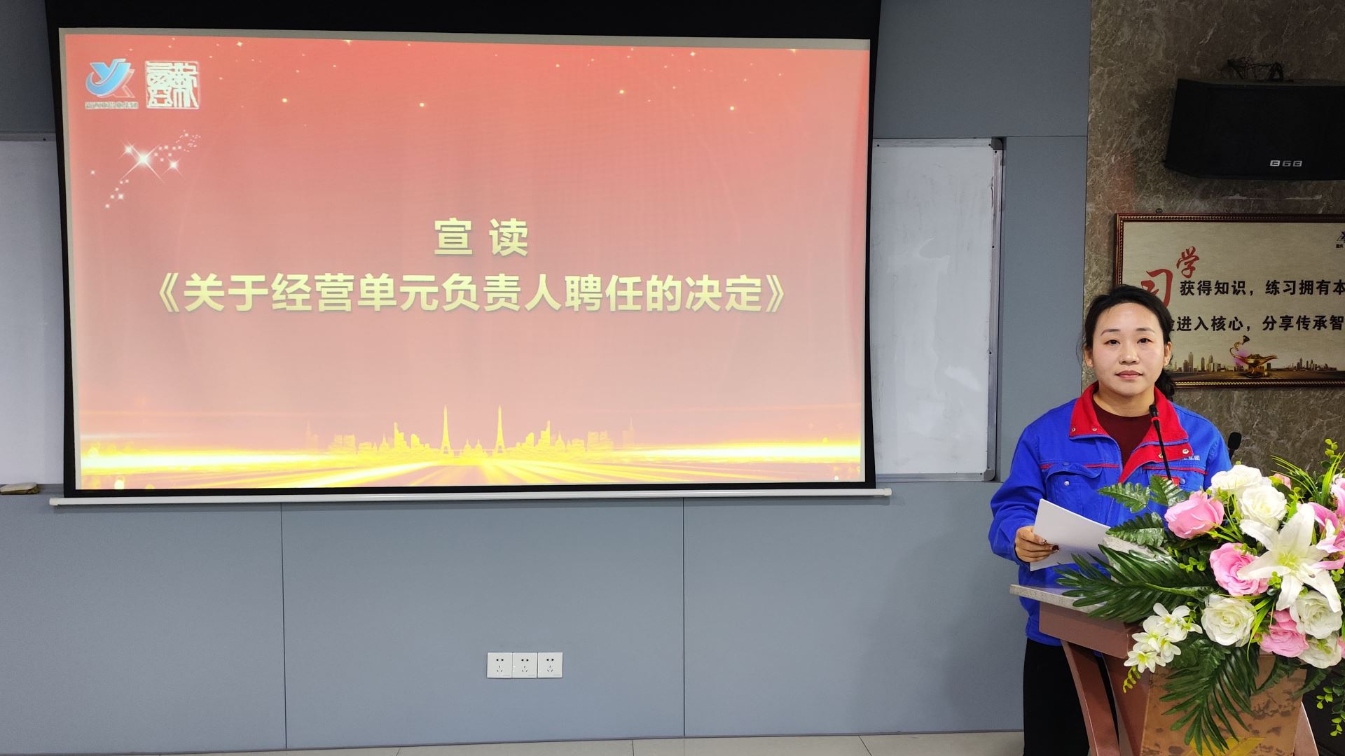 財務管理部經理宋玉芳宣讀了《關于經營單元負責人聘任的決定》,隨后,劉斌董事長向各經營單元授隊旗,象征著新西亞人勇攀高峰的決心。