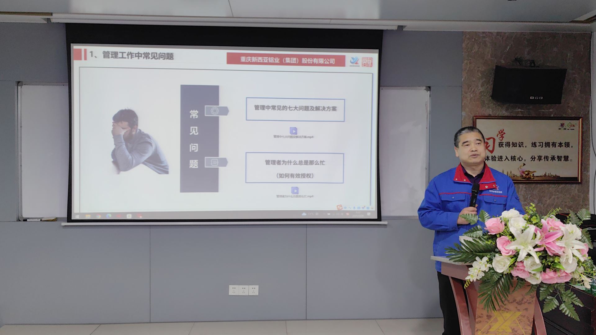 面對行業、產業不確定性進一步增大的嚴峻形勢,如何提升企業管理,更好地賦能經營工作,實現企業經營目標的達成與實現。近期,集團公司針對企業管理工作中暴露出的現象與問題,在新西亞商學院開展了一場以“刀刃向內抓管理,提升質效促發展”為要義的管理知識培訓會。公司經營、管理、技術負責人,生產班組長、儲備(后備)人才及新員工代表共計40余人參會。新西亞商學院院長、鋁家居事業部經營負責人王凱主持培訓會。.jpg)