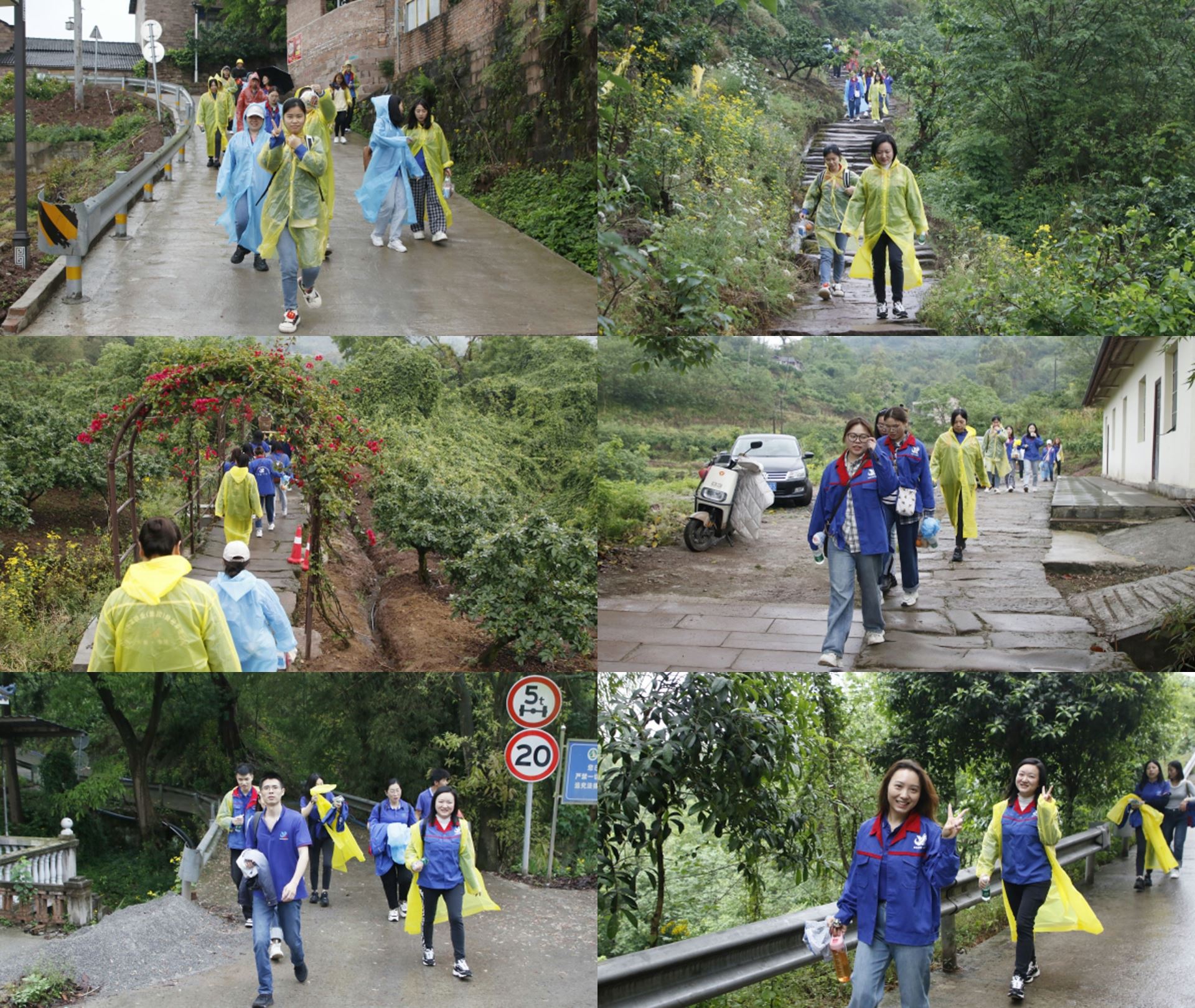 一路上,盡管飄著小雨,但大家熱情高漲,歡聲笑語不斷。雨水打濕了衣衫,卻也澆不滅大家的熱情。山路蜿蜒向上,石板路在腳下延伸,兩旁的樹木郁郁蔥蔥,鳥鳴聲不時入耳。有的路段較為平緩,大家結伴而行,邊走邊聊,分享著工作和生活中的趣事;有的路段則較為陡峭,大家相互鼓勵,相互攙扶,體力較好的員工主動幫助體力較弱的員工背負一些物品,充分展現了新西亞青年員工團結協作、積極向上的精神風貌。