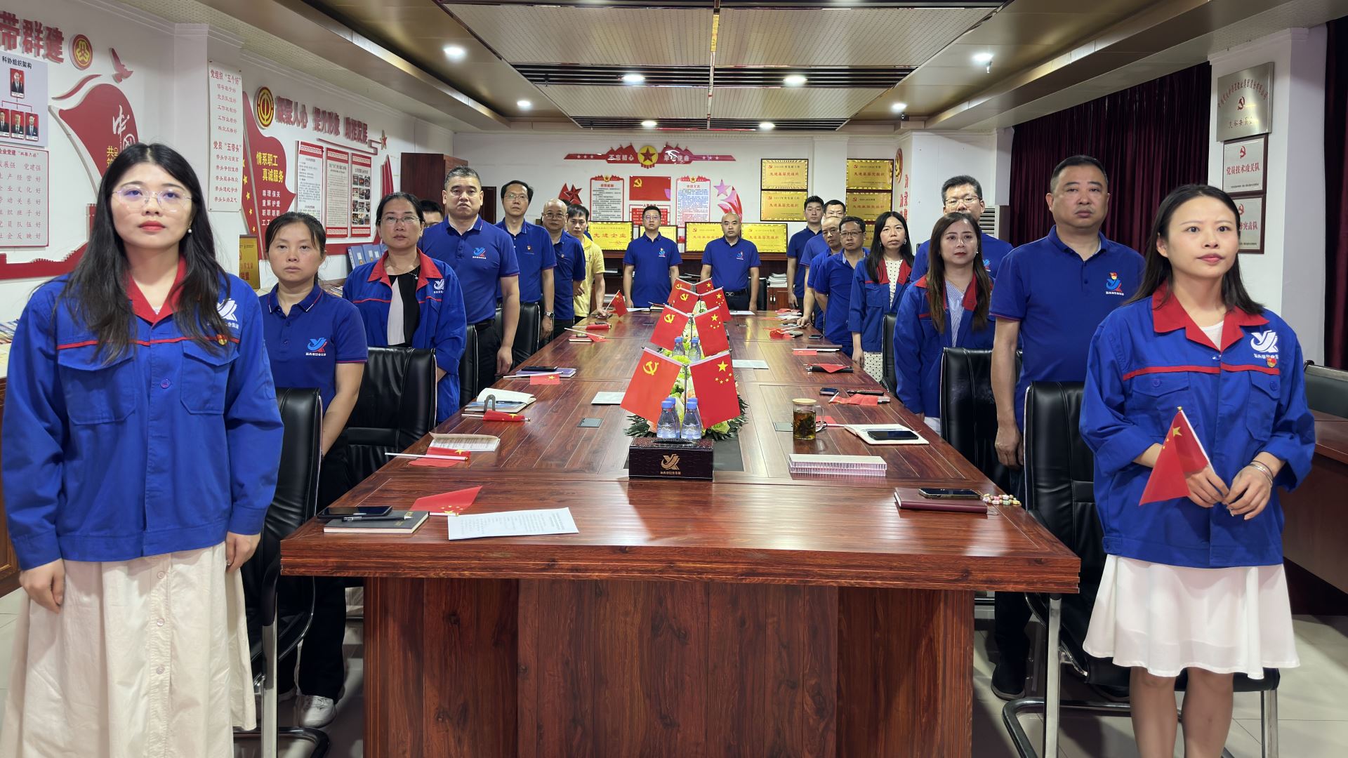 閱兵式伊始,全體與會人員肅立,莊嚴肅穆地奏唱國歌《義勇軍進行曲》。“起來,不愿做奴隸的人們,把我們的血肉筑成我們新的長城!”激昂的旋律在會議室內回蕩,喚起了在場每一位員工深藏的愛國情懷。