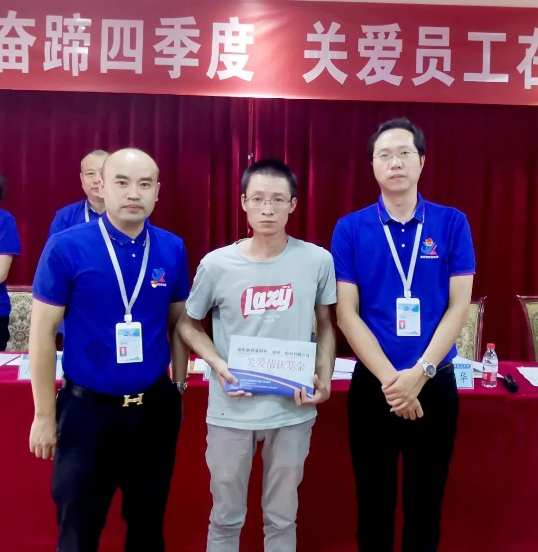 會上,工會主席、副總經(jīng)理傅明華將“新西亞關(guān)愛幫扶基金”發(fā)放到了困難員工許金飛的手中。勉勵他樹立信心,克服眼前的困難。