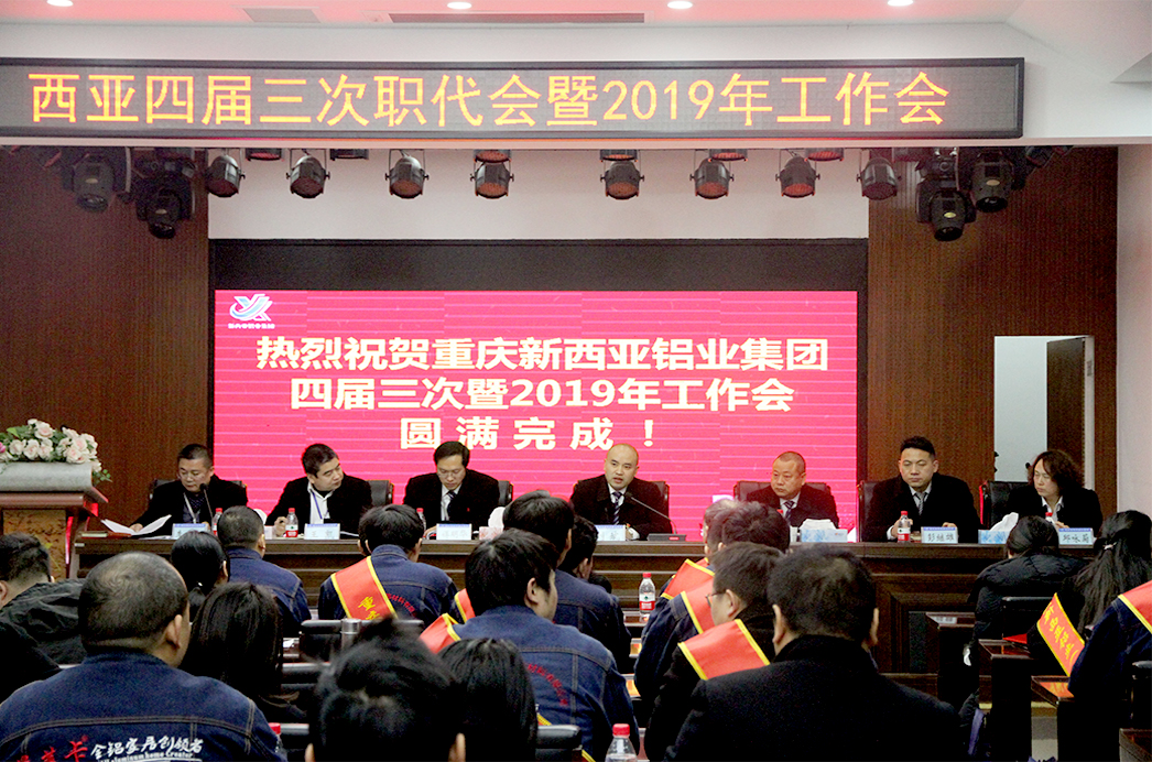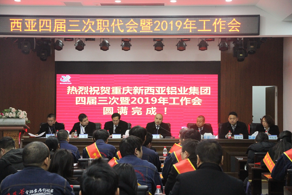 為總結2018年取得的成績,謀劃2019年發展大計,1月26日上午8點,重慶新西亞鋁業集團在德感工業園區黨群活動中心召開了“四屆三次職代會暨2019年工作會”。公司經營班子、主管以上管理人員、先進代表及職工代表共100人參加了會議。公司副總經理李小紅主持會議。