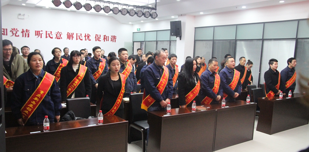 會上,董事長劉斌與工會主席傅明華簽訂了新西亞鋁業集團2019年《集體合同》;公司傅總經理傅明華宣讀了公司2019年干部任免決定;劉董事長親自將紅彤彤的“任命書”頒發給每一個公司經營班子成員和部門負責人手中,受聘干部隨即進行了莊嚴的集體宣誓。