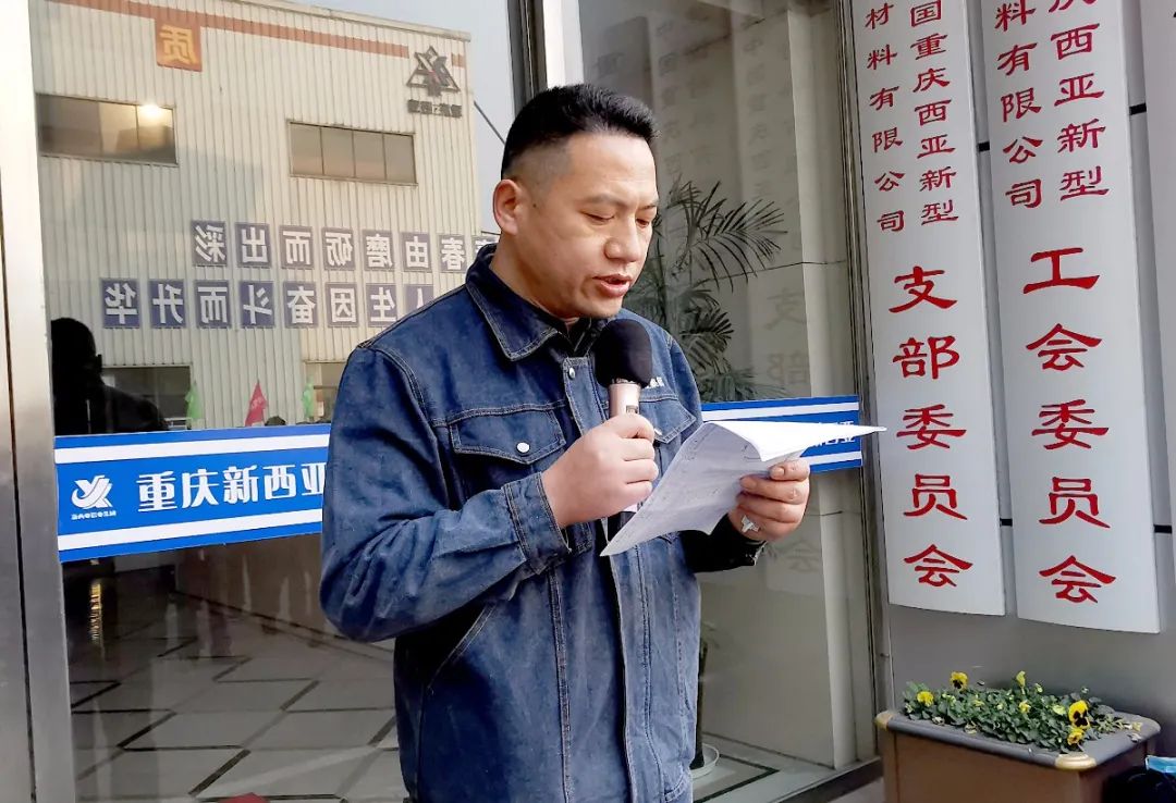 總經理助理彭繼雄宣讀了開工倡議書,號召全體新西亞家人要做使命在肩、初心如磐的新西亞人;做與時俱進、勇攀高峰的新西亞人;做真抓實干、奮勇爭先的新西亞人;做無私奉獻、擔當作為的新西亞人;要堅持與公司風雨前行,共克時艱、共創輝煌,努力譜寫新西亞鋁業集團高質量發展的新篇章。