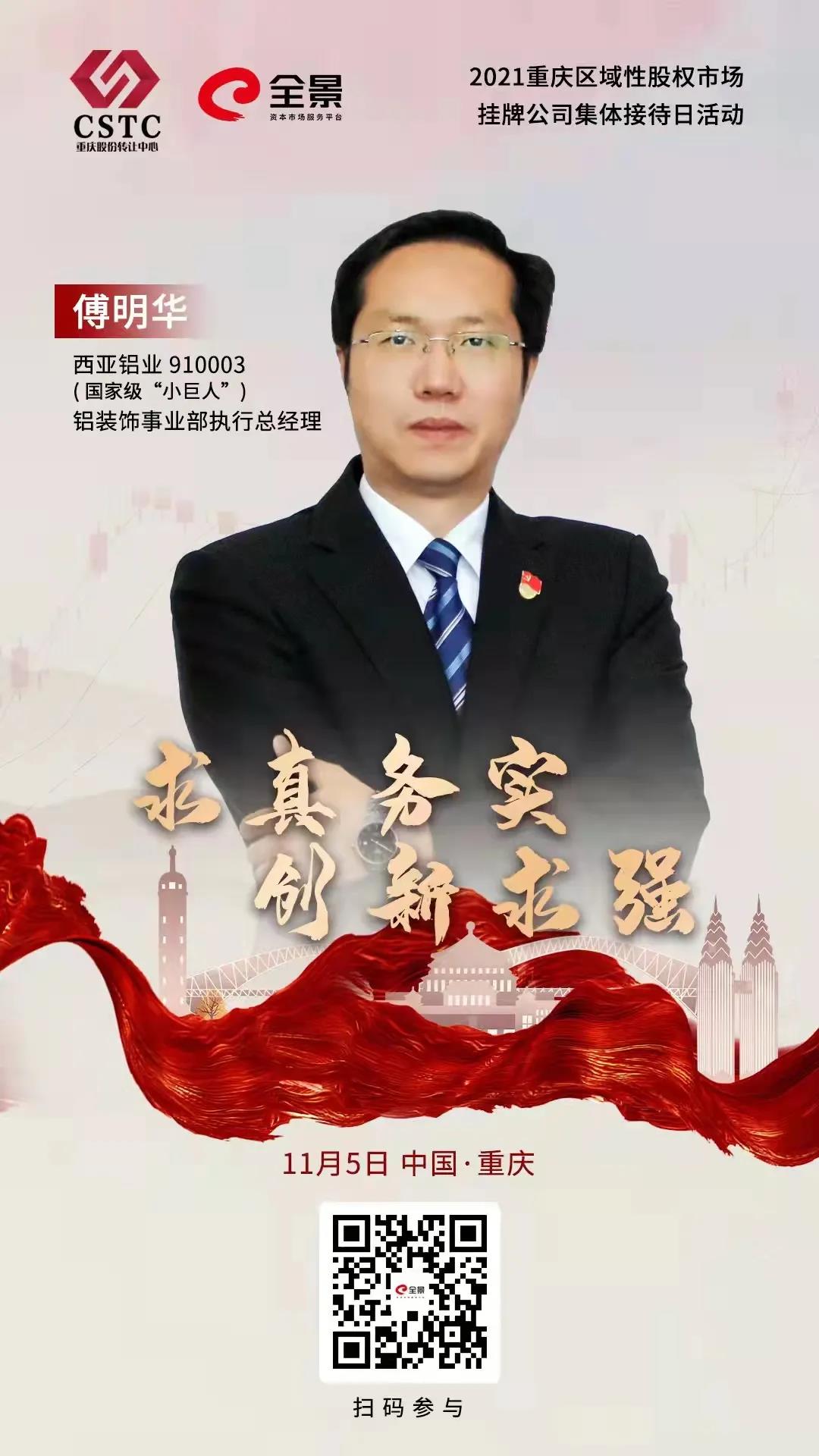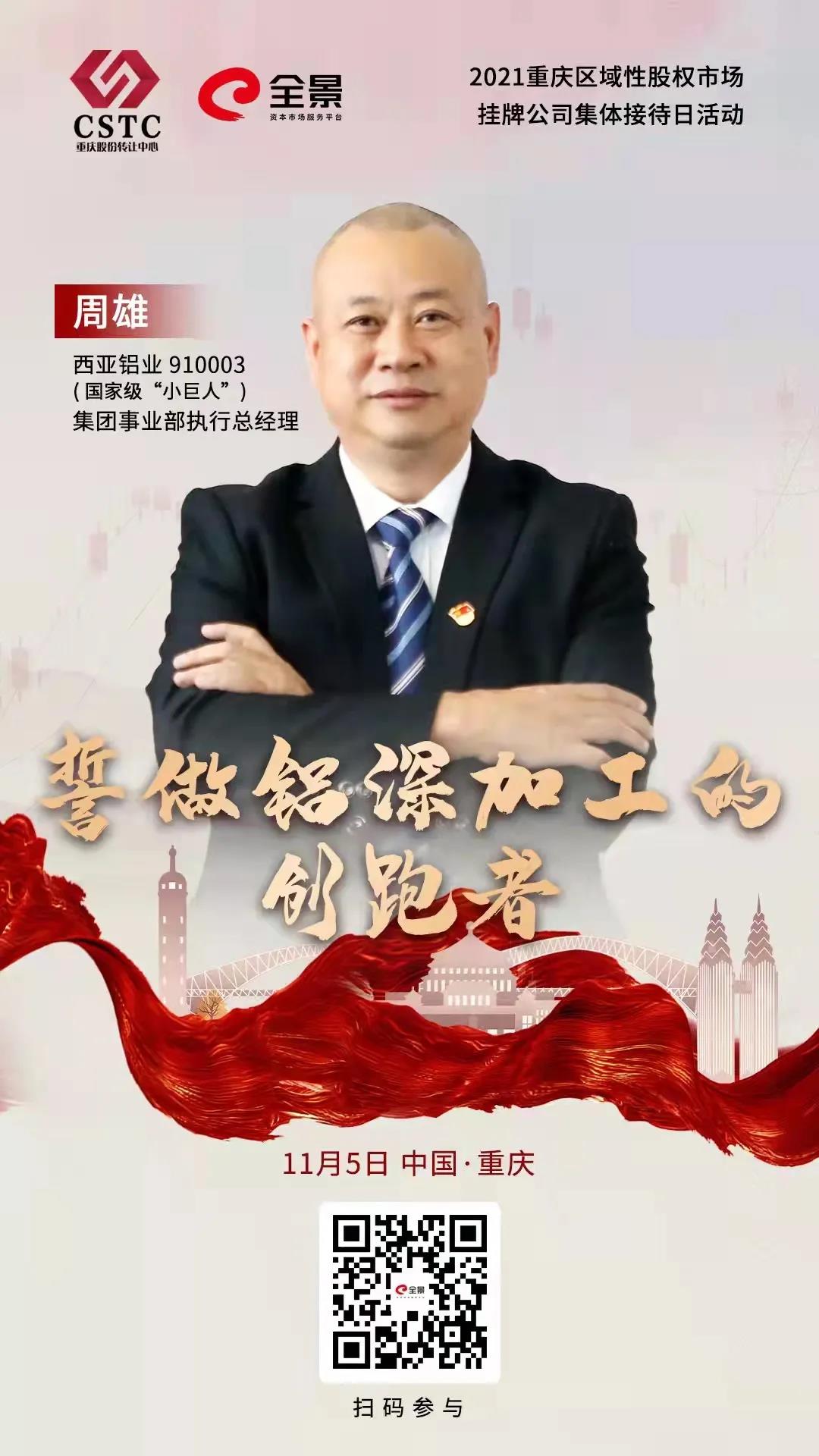 重慶新西亞鋁業(yè)集團(tuán)作為掛牌企業(yè)(股權(quán)代碼910003),高度重視此次活動(dòng),集團(tuán)公司董事長兼總經(jīng)理劉斌,集團(tuán)事業(yè)部執(zhí)行總經(jīng)理周雄,鋁裝飾事業(yè)部執(zhí)行總經(jīng)理傅明華全程參與。