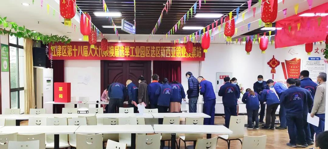 “人大代表人民選,選好代表為人民”。12月10日是江津區(qū)第十八屆人大代表換屆選舉日。新西亞鋁業(yè)集團(tuán)作為江津區(qū)德感選區(qū)投票站點(diǎn)之一,高度重視此次選舉投票工作,按照選舉委員會(huì)的統(tǒng)一部署,積極配合德感園區(qū)管委會(huì)做好此次換屆選舉投票相關(guān)籌備工作,投票站點(diǎn)設(shè)在新西亞鋁業(yè)集團(tuán)員工食堂大廳。