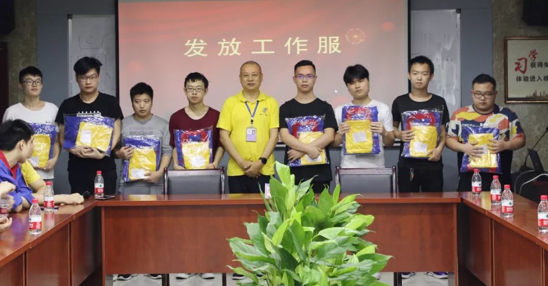儀式上,公司副總經(jīng)理周雄親自向8名新員工發(fā)放了工作服。