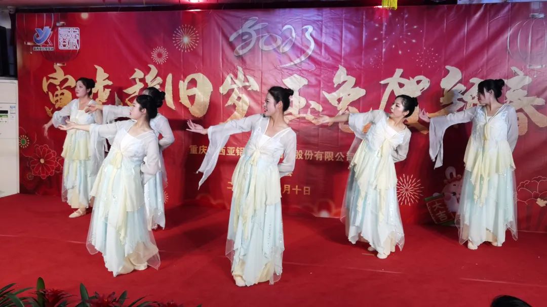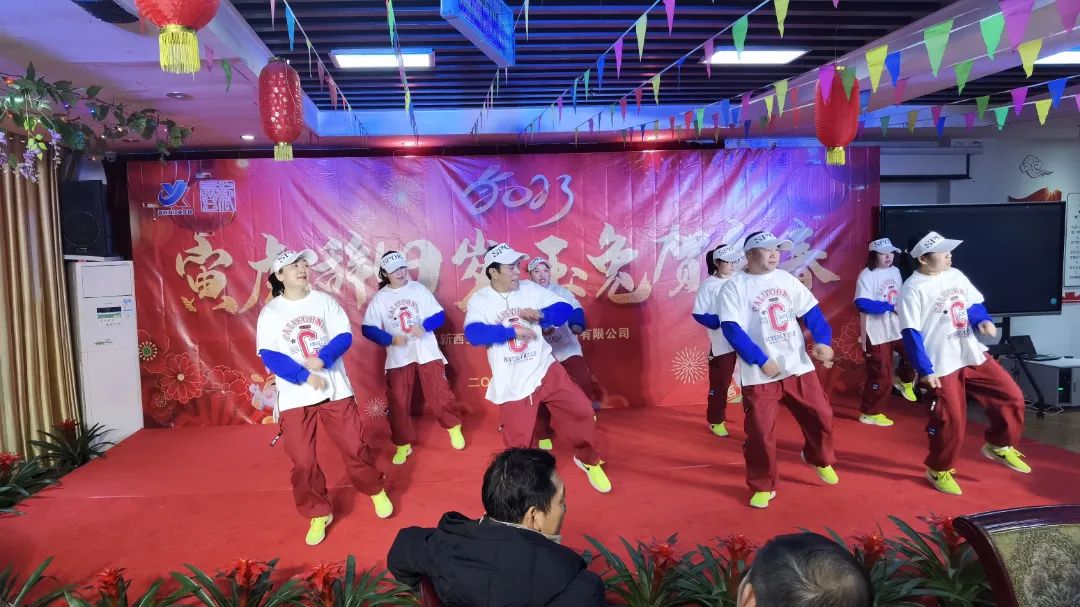 16點30分,來自后勤保障部門的姑娘們帶來的舞蹈《福氣要來到》熱舞開場,拉開了新西亞2023新春團拜晚會的帷幕。一首開場秀跳罷,臺下觀眾已然沸騰,恭賀新春的氣氛瞬間爆棚。