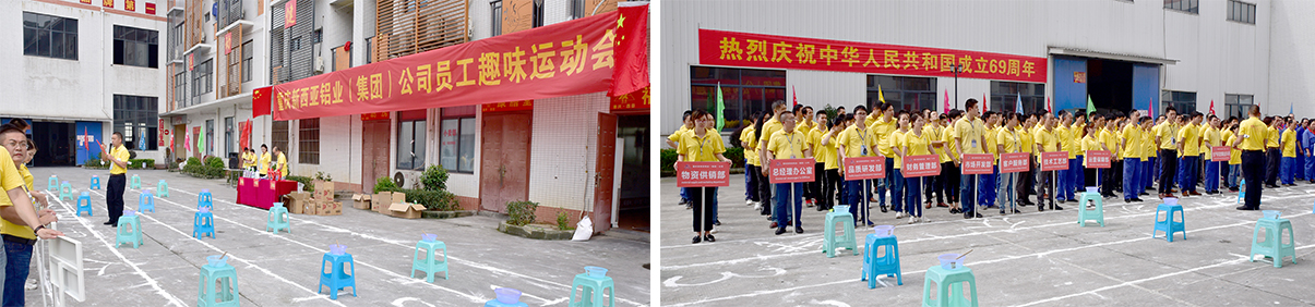 為熱烈慶祝中華人民共和國成立69周年,進一步豐富員工業(yè)余文化生活,重慶新西亞鋁業(yè)(集團)公司于9月29日下午,在公司籃球場舉辦了一次別開生面的員工趣味運動會,為全體新西亞家人奉獻了一頓豐富多彩的精神大餐。新西亞家人220人次參加了運動會。公司董事長劉斌及經(jīng)營班子成員親臨運動會現(xiàn)場,與全體家人同臺競技,與民同樂。