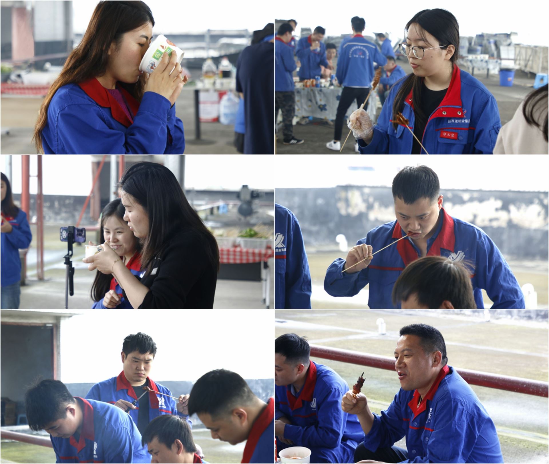 在活動現場,歡聲笑語此起彼伏,氣氛熱烈融洽。大家各司其職,為燒烤活動做著精心準備。從食材的挑選到燒烤架的搭建,從調料的準備到燒烤醬的熬制,每個細節都凝聚了大家的智慧和汗水。此外,“搶凳子贏取食材”互動游戲環節,為活動增色添彩。