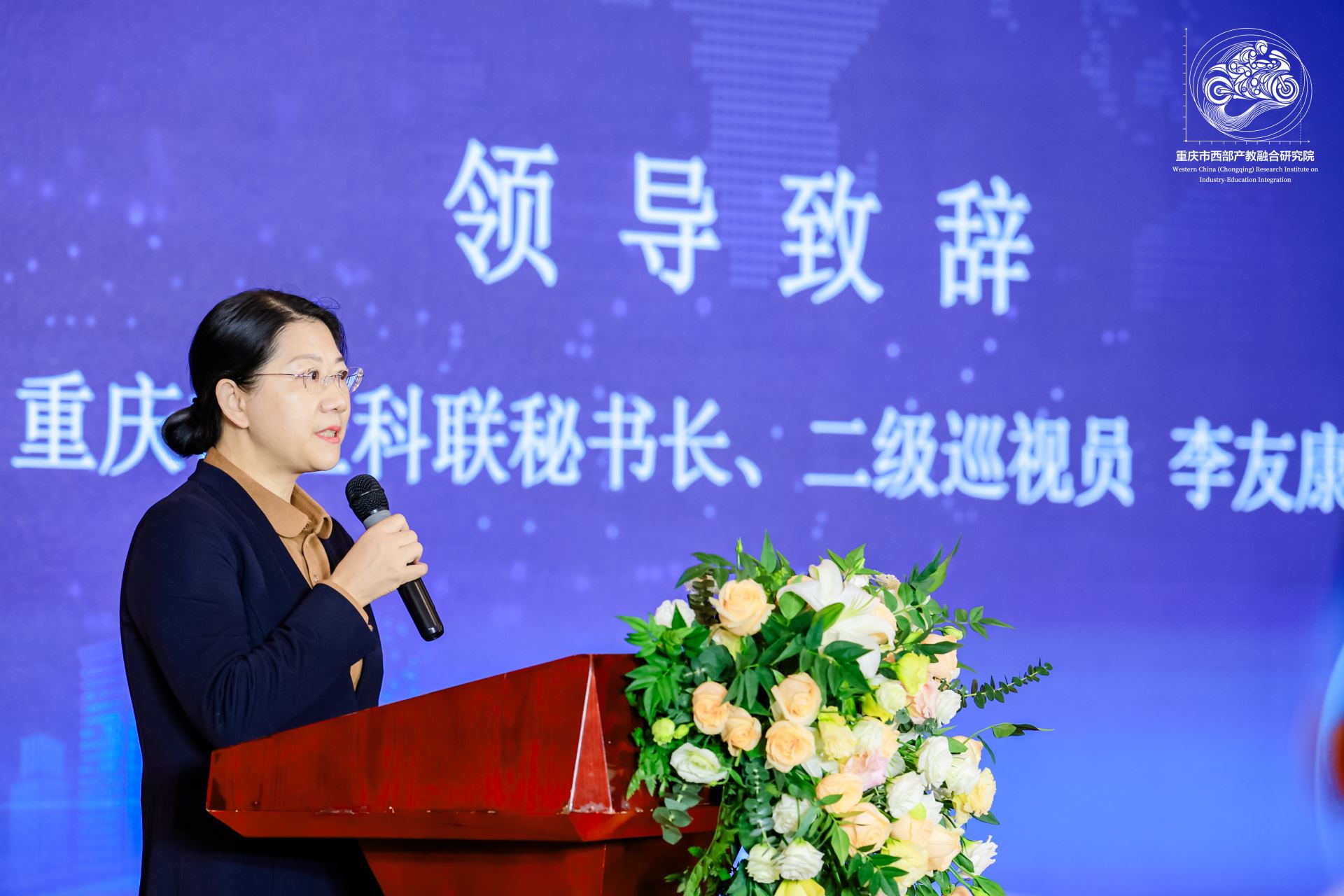 李友康秘書長表示,作為研究院的監督指導單位,見證了研究院的成長與發展。研究院雖然成立時間較短,但自籌備以來,勇于創新,敢于探索,在實踐中不斷總結經驗,打造了諸多產教融合標志性成果,如今研究院成立亦是階段性成果的展示。她強調全市社科界對研究院有更高政治與工作要求,期待研究院未來能把握職業教育改革發展的主題主線,順應職普融通、產教融合的時代潮流,走教育發展、科技創新、人才培養之路,結合實際,做好貫徹落實,嚴格執行以下四個任務要求:一是提高政治站位,二是要強化理論武裝,三是要敢于擔當作為,四是要推動融合結合。為全市社科界打造“渝字號”社科品牌作出新突破,在推動哲學社會科學高質量發展上有新作為。