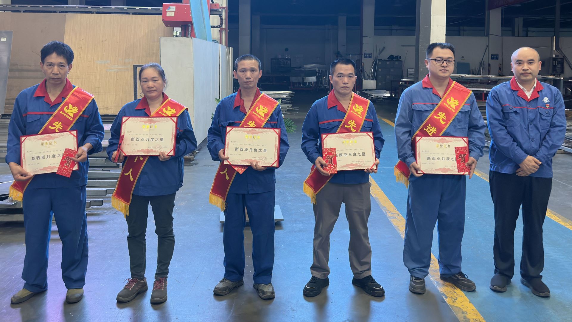 表彰環(huán)節(jié),4月份“新西亞之星”名單正式公布。鈑金車間折彎工張金榮、裝配工楊德平、打磨工蔣世權,噴涂車間前處理工代珍友,運營保障部勤雜工周澤榮等五位來自基層一線的員工代表,憑借精湛的技藝、高度的責任心和敬業(yè)精神,在平凡的崗位上做出了不平凡的業(yè)績,以自己的實際行動詮釋了“新西亞精神”內涵。黨支部書記、總經(jīng)理劉斌為他們頒發(fā)榮譽證書和獎金,并對他們的辛勤付出表示充分肯定和衷心感謝。