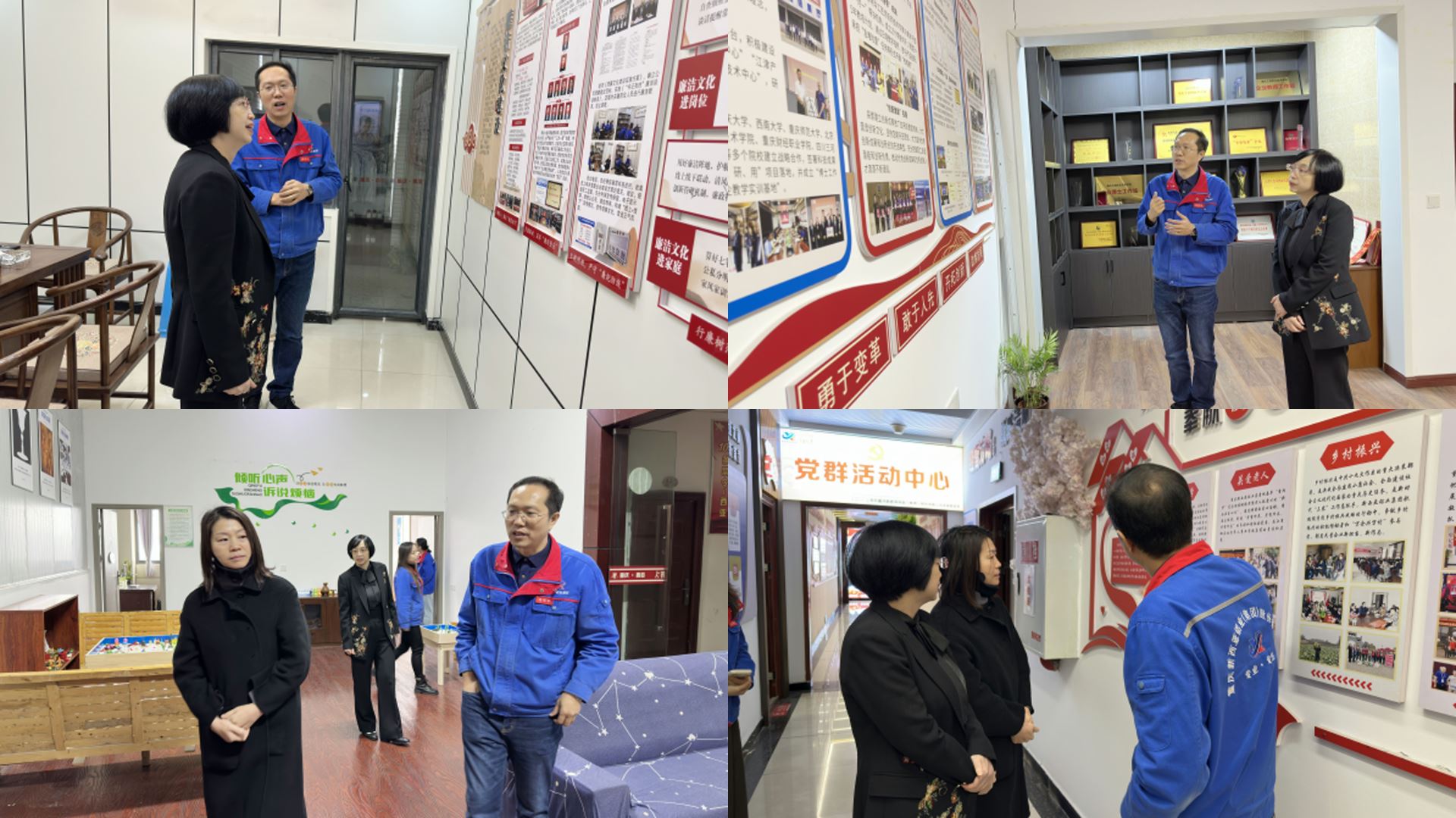 在集團公司工會主席傅明華的陪同下,鄒芝蘭副主席一行參觀了公司鋁裝飾、鋁家居產品展廳,以及黨群活動室、職工書屋、職工活動中心、工匠工作室、心理咨詢室等功能區域和工會陣地運行情況。