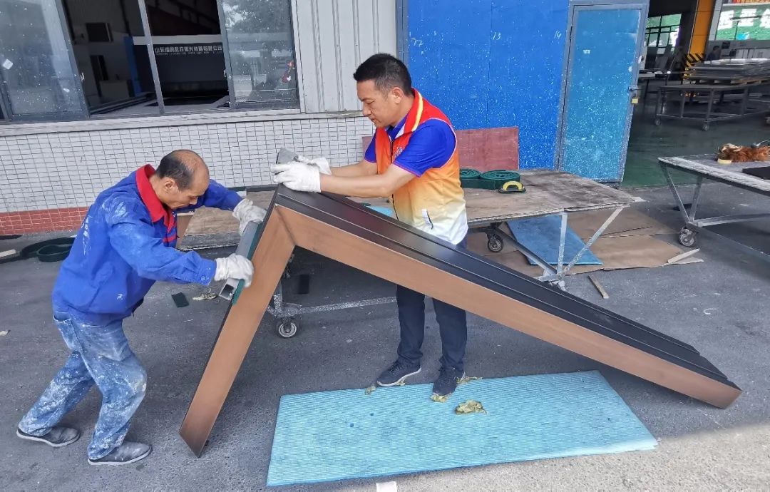 下午14時整,一支身著“黨員先鋒隊”馬甲服裝的突擊隊伍準時出現在集團公司鋁裝飾生產車間。一到車間,他們迅速找準突擊崗位,立即投入到一線工作中。有的女同志拿上較重的釘槍,毫無怨言地立足裝配工位,標準快速地打入每一顆鉚釘;有的女同志走上開料、劃線工序,協助抬板、貼標簽;全體男同志突擊噴涂拉絲崗位,認真按照工藝流程處理鋁板表面,生產現場出現一片熱火朝天的繁忙景象,極大地緩解了一線生產壓力。
