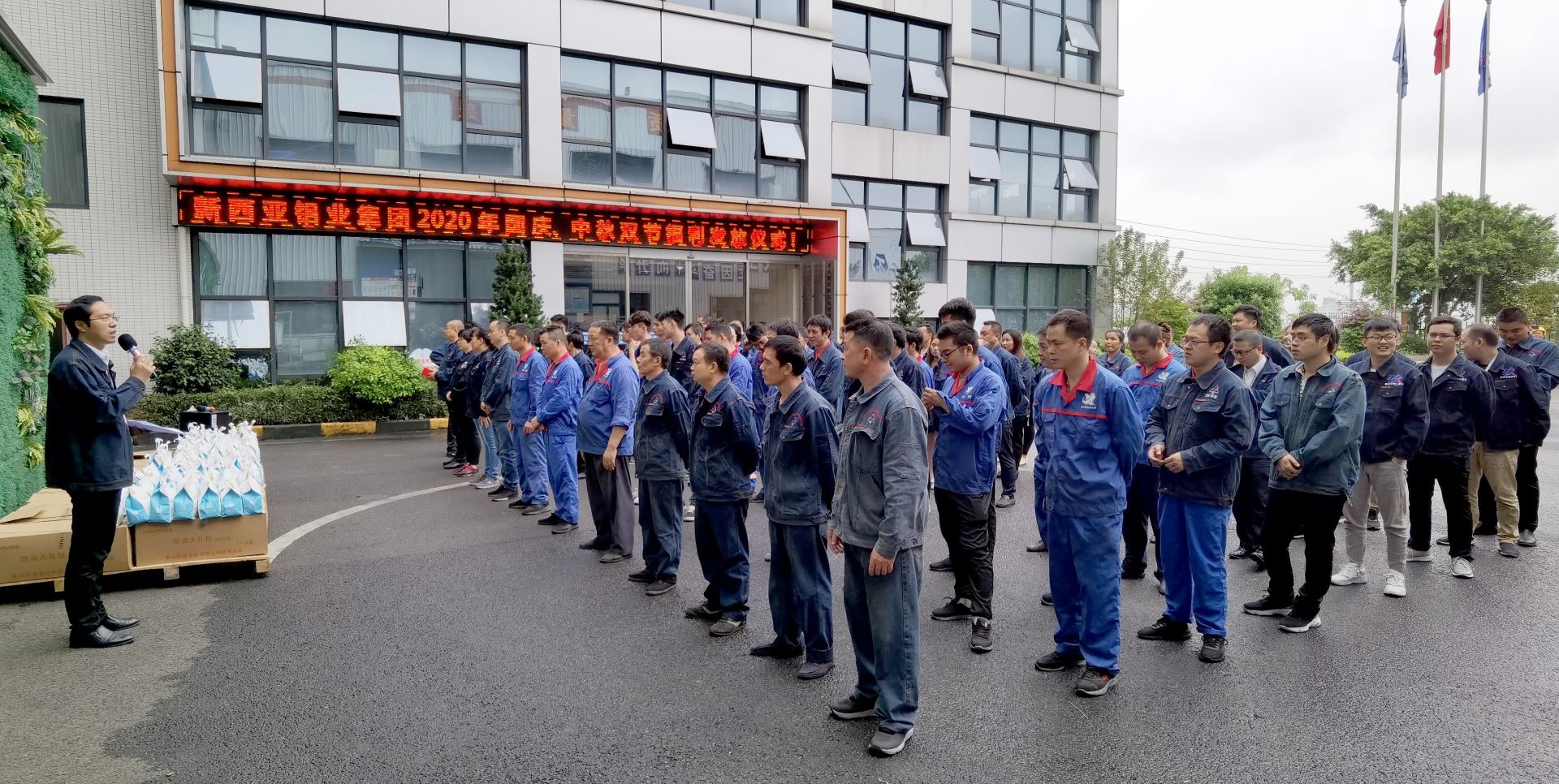秋風送爽結碩果,丹桂飄香迎佳節。在2020年國慶、中秋“雙節”來臨之際,為營造濃郁的節日氛圍,增加員工歸屬感,增強凝聚力和向心力,9月26日,新西亞鋁業集團在中庭廣場開展了國慶中秋雙節福利發放儀式。公司副總經理、工會主席傅明華主持儀式,110名員工代表參加。